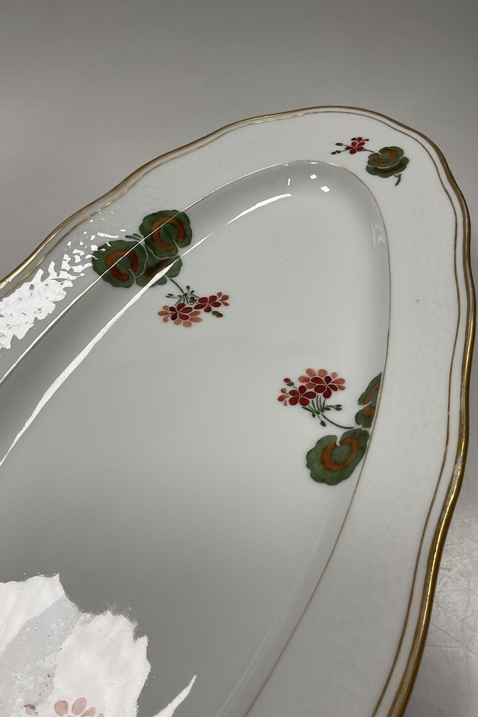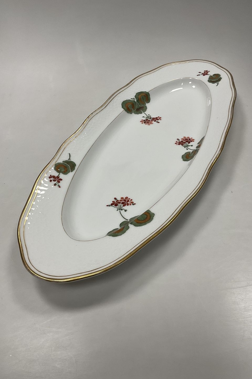 Beskrivelse: Royal Copenhagen Art Nouveau Stel No. 225 Pelargonie Fiskefad No. 2015