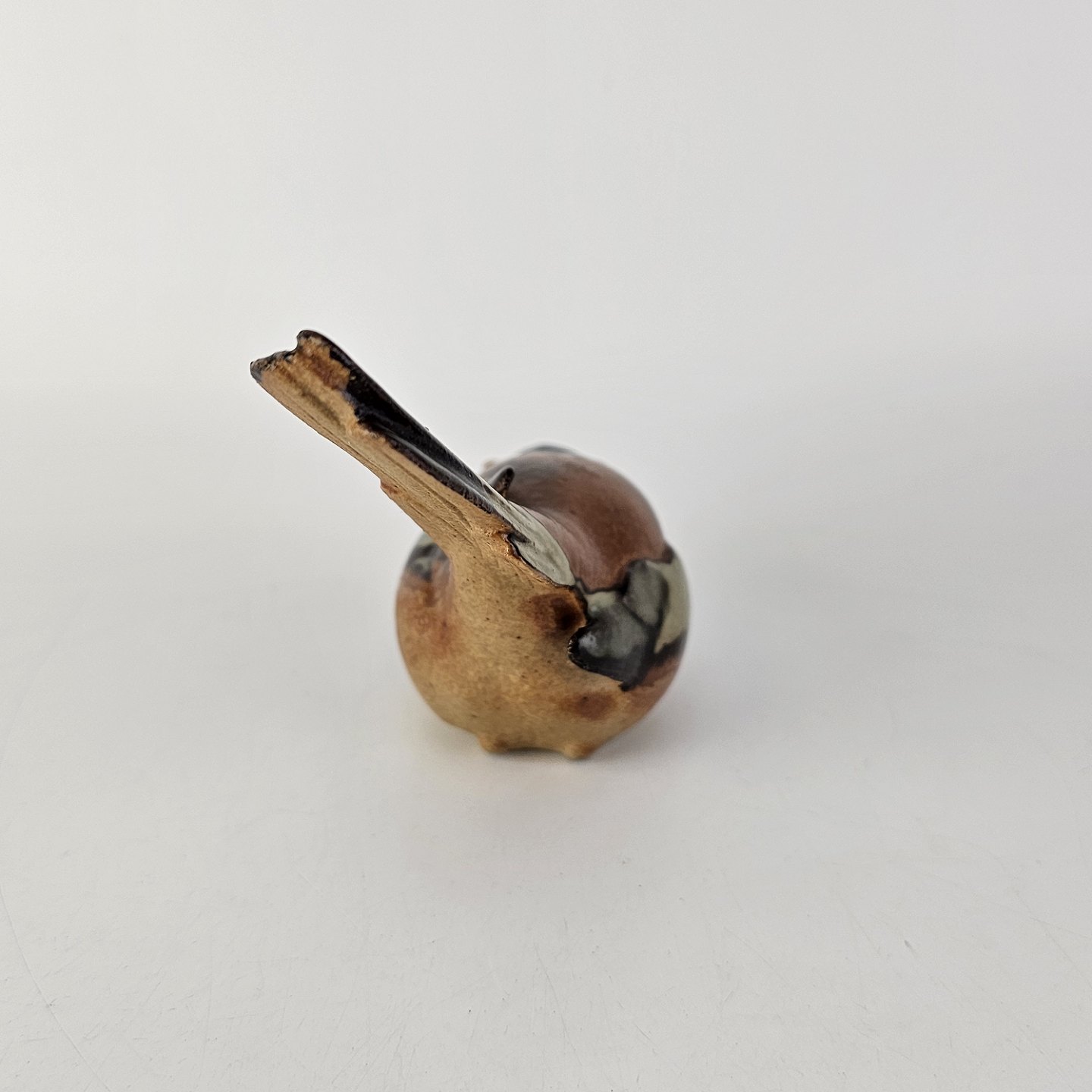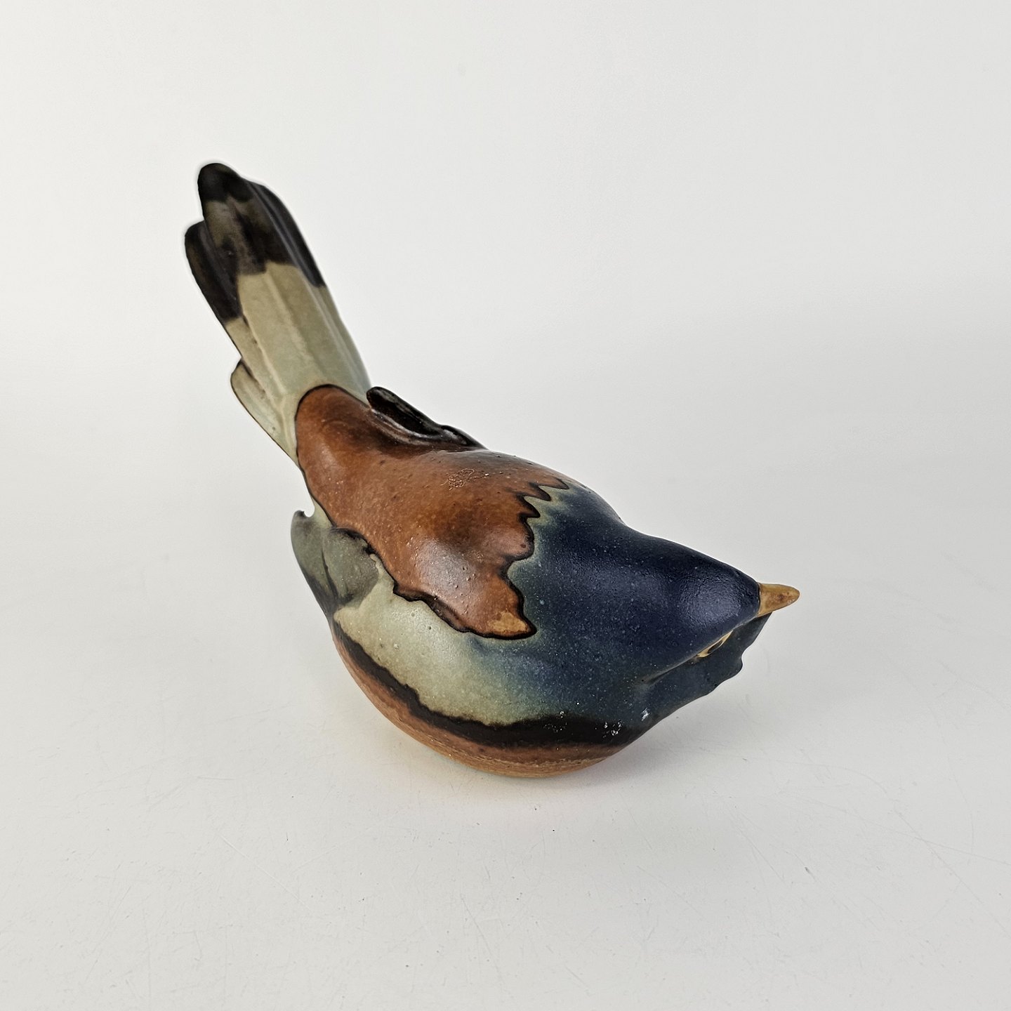 Beskrivelse: Optimist figur i stentøj med motiv af en fugl med halen oppe