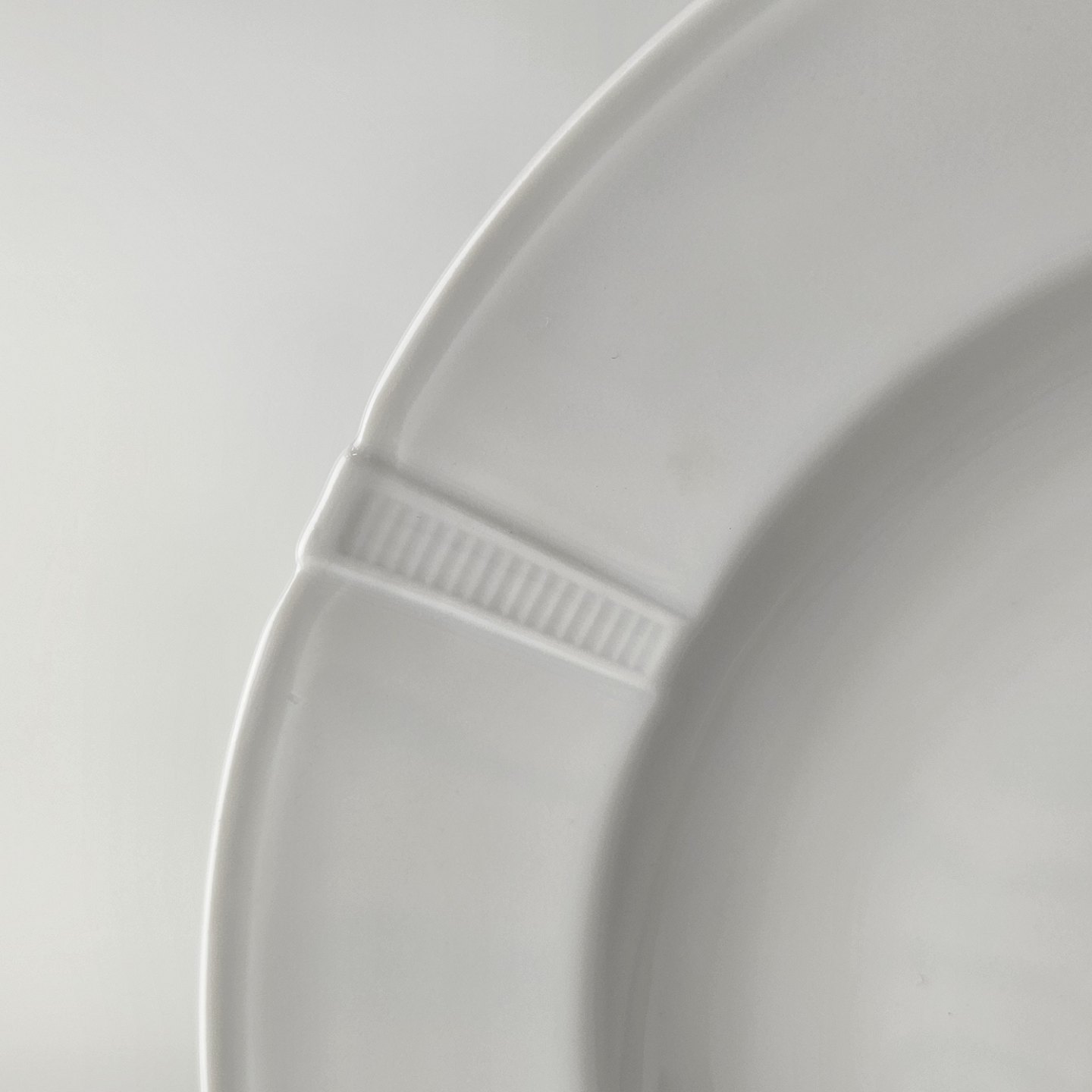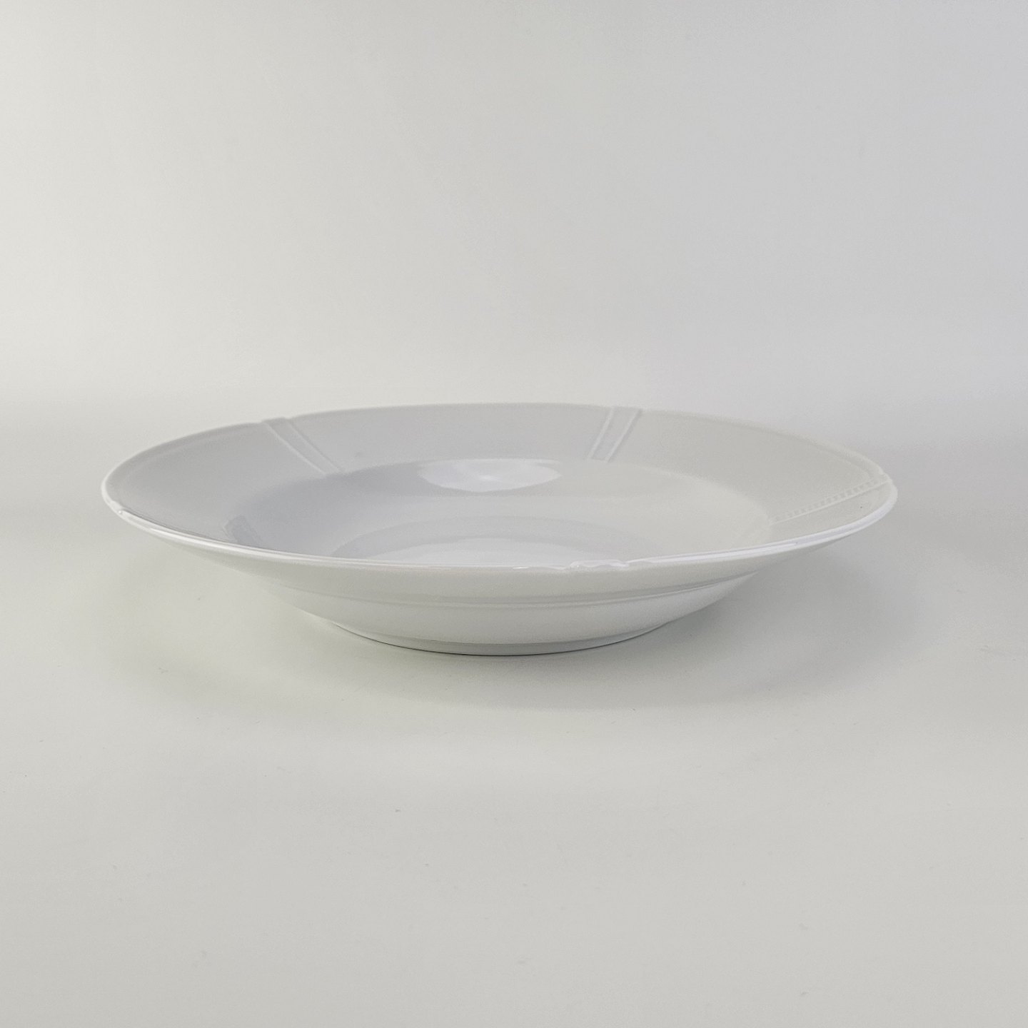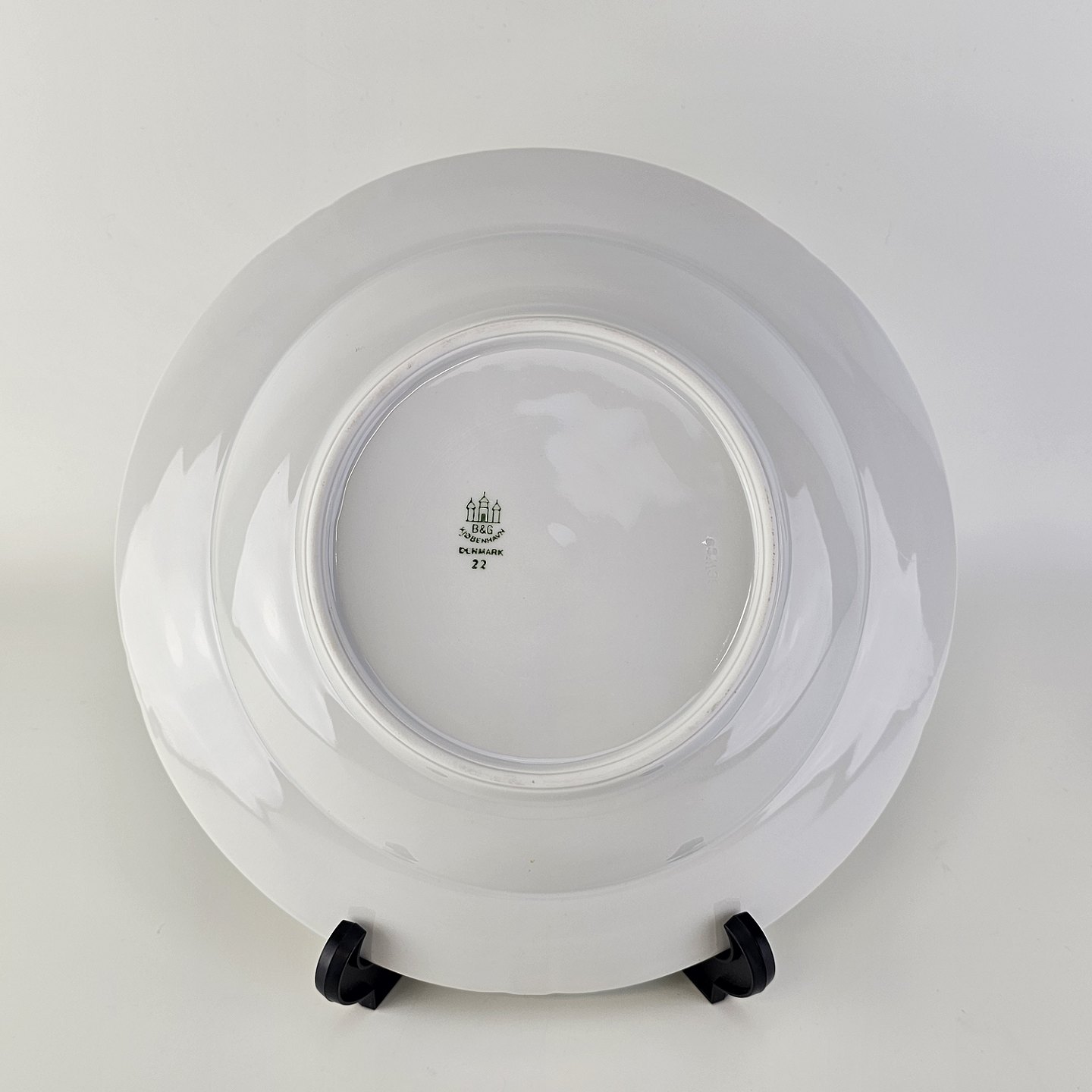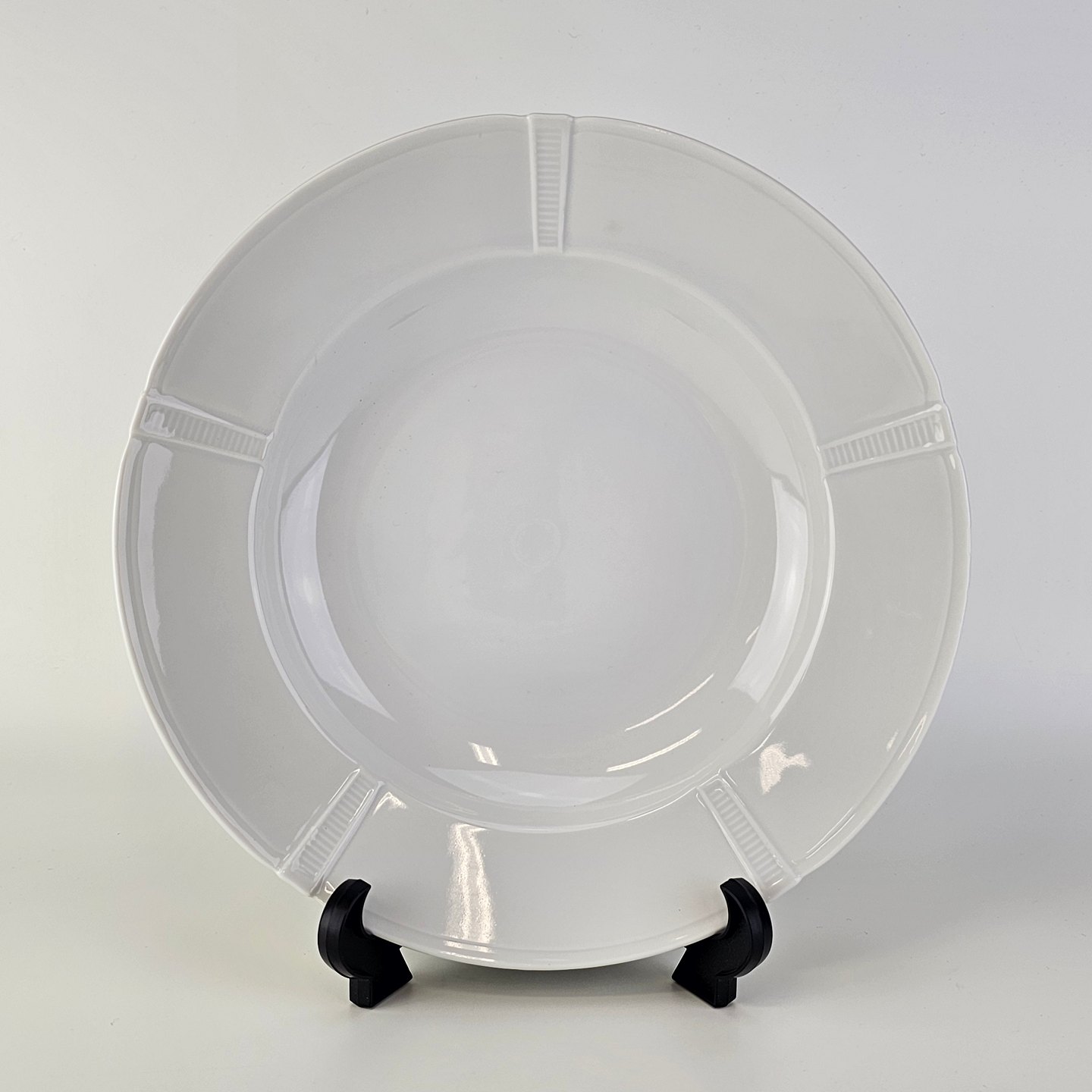 Beskrivelse: Stor dyb tallerken i hvidt porcelæn fra stellet Rosenborg