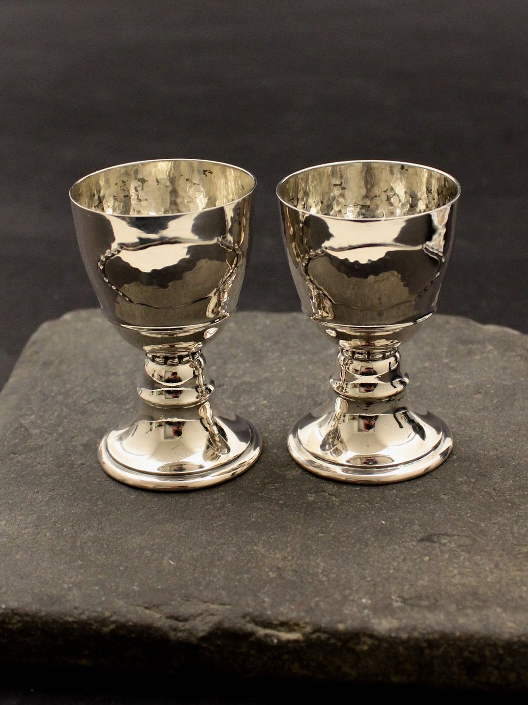 Et par tretårnet sølv æggebægre