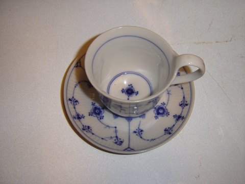 Beskrivelse: Kongelig Musselmalet Riflet, Stor Kaffekop med høj hank og underkop fra før 1923.