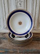 Set på 6 B&G dessert dybtallerken dekoreret med kongeblå fane, græsk evighedsmønster og våbenskjold i guld 21 cm. |