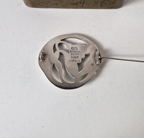 Evald Nielsen skønvirke broche i sølv dekoreret med vintergækker Stemplet: EN - Sterling - Silver - Sølv - 925 Mål 3,8 x 4,2 cm.