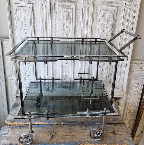 Vintage bar table with frame and wheels in chromed steel
