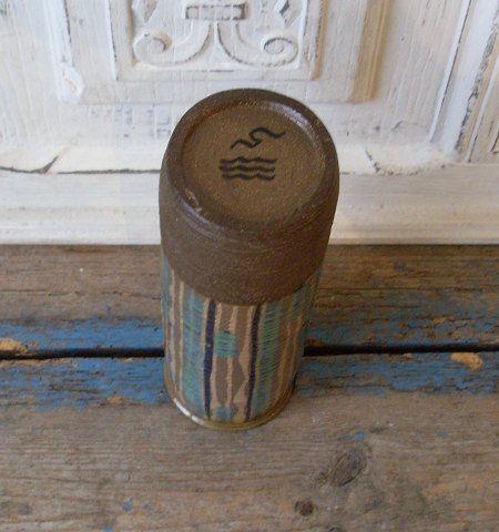 Niels Thorsson for Royal Copenhagen unika stentøjs vase med smuk stribet glasur. Højde 23cm. Diameter top 7cm.