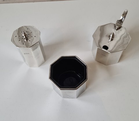 Saltkar, peberbøsse & sennepskrukke i sterlingsølv - W. I. Broadway & Co.