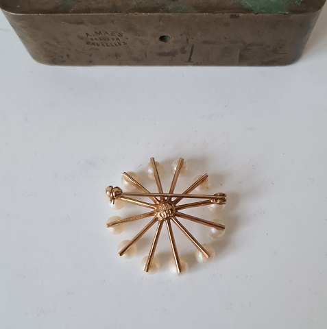 Vintage pearl brooch in 14 kt gold by Henning Oddershede