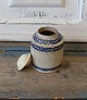 Smuk 1700tals tedåse i fajance med enkel blå dekoration. Fremstår med hårrevne samt små afslag. Højde 11cm. Diameter 8cm.