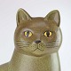 Keramik kat af grønmeleret stentøj fra serien Murre. Størrelsen maxi