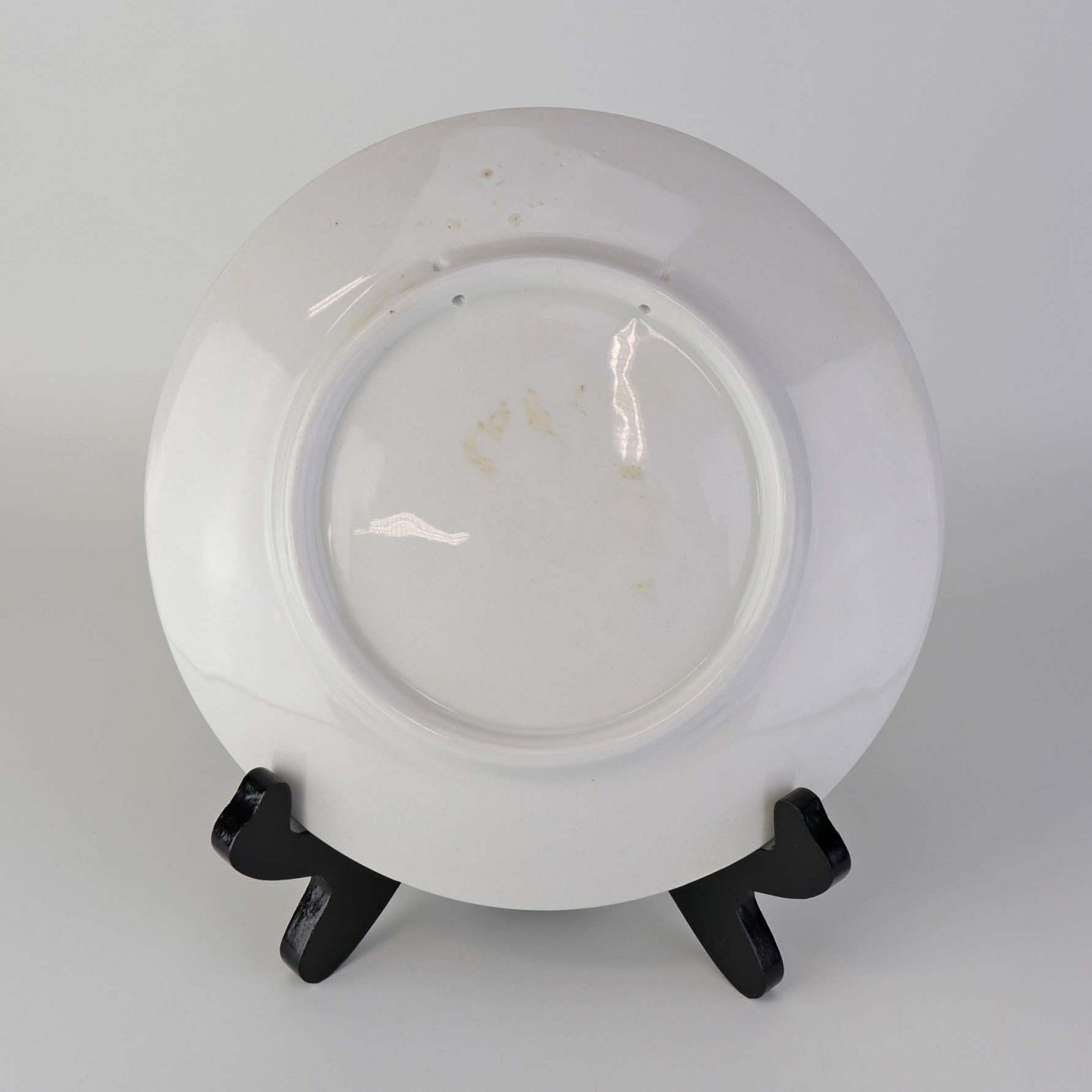 Fremstår med et mindre nøk i kanten, sporadisk blå farve kantfarve samt ujævnheder i fajancen på bagsiden.
