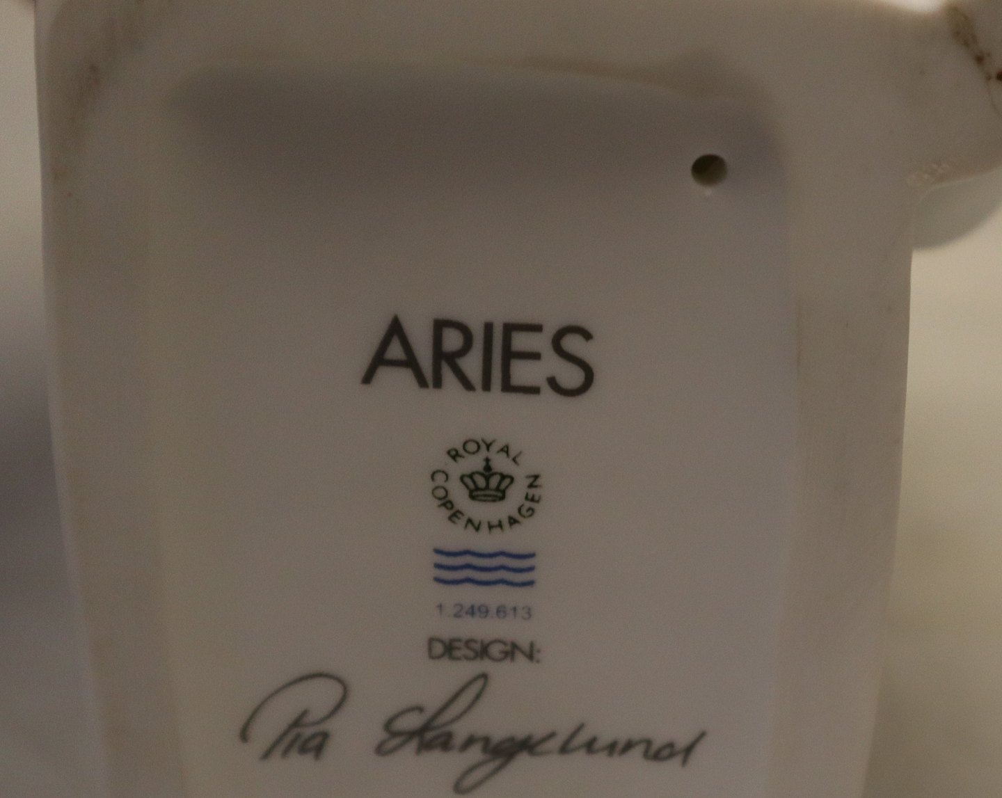 Beskrivelse: 613 Kgl. Stjernetegn, Aries - Vædderen, mand 30 cm (21. marts og 20. april. ) hvid (1249613) Pia Langelund fra Royal Copenhagen I hel og fin stand