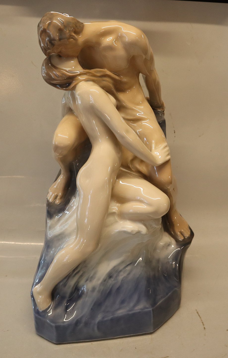 Kgl. figur fra Royal Copenhagen. 1132 RC Theodor Lundberg Bølge og Strand 46 cm 1897 I hel og fin stand Kys og Bølgeskvulp