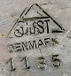 Just Andersen Art Deco pewter vase. Marked Model number 1185. In good condition. Measures 12.5 x 10.5 cm.
