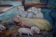 Ubekendt skandinavisk kunstner, ca. 1920. Olie på plade. Grisestald. 72 x 60 cm. Total størrelse inkl. ramme (82 x 70 cm.) Usigneret. På bagsiden "Aug. Berg" svensk kunstner. I perfekt stand.
