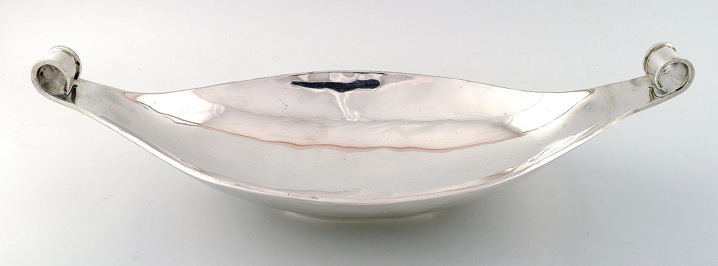 Stor Art deco opsats/skål i Sterlingsølv. 1940/50´erne. Måler : 45 cm. x 17,5 cm. Vægt : 721 gram. Utydeligt stemplet. I flot stand.