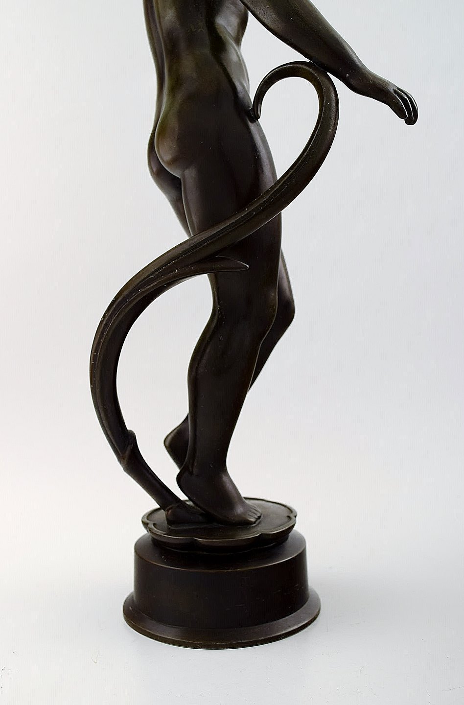 Just Andersen 1884-1943. Large and rare figure of patinated "disco metal" in the form of a standing naked woman. Signed: Just A and D 1516. Height: 46 cm. In perfect condition, fine patina.
