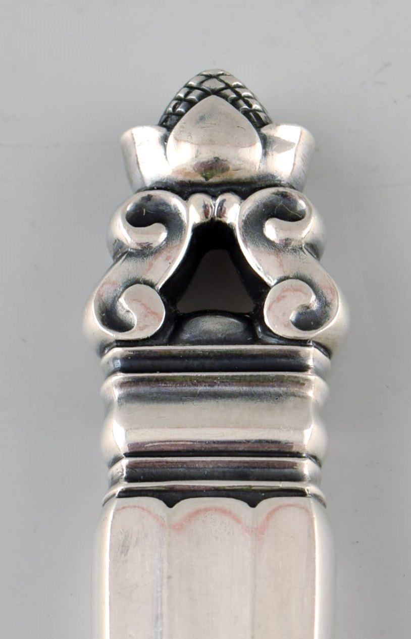 Georg Jensen Acorn cake knife # 196, Sterling Silver and Stainless Steel. 2 pcs. in stock. Length 27 cm. Stamped c. 1950. In perfect condition.
