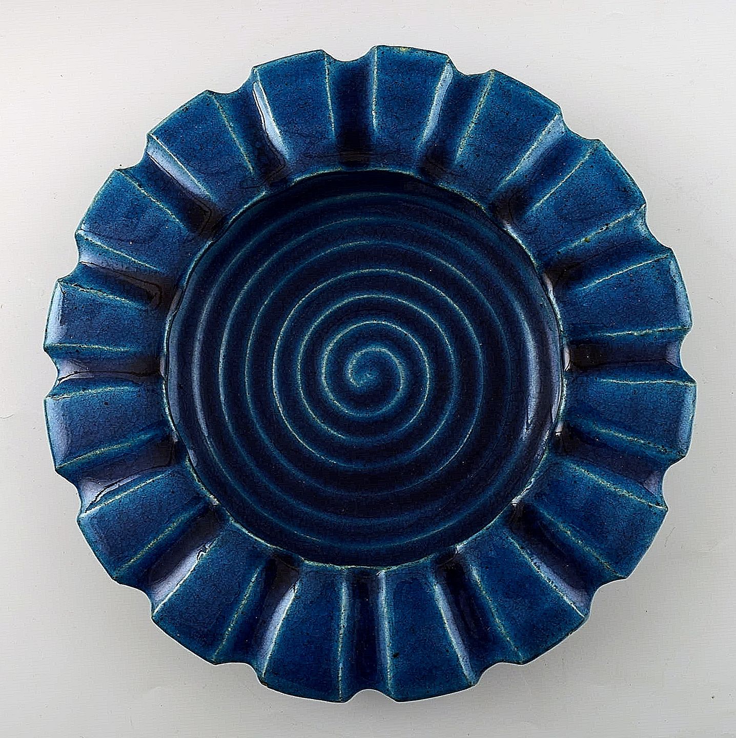 Kähler, Denmark, round glazed dish, 1940s. Designed by Svend Hammershøi. Blue glaze. Measures 27 x 6 cm. Stamped. In perfect condition.