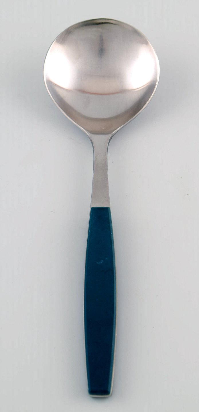 Henning Koppel. Strata salatsæt af rustfrit stål og grøn plast. Fremstillet hos Georg Jensen. I god stand. Dansk design 1970´erne. 22 cm. lange.