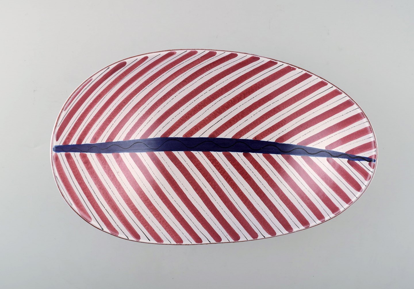 Stor skål, Stig Lindberg, Gustavsberg studio. Fajance. 1940´erne. Måler : 26,5 cm. x 18 cm. x 7 cm. højt. Signeret med "studiohand". I perfekt stand.