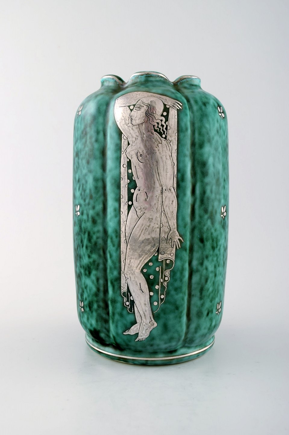 Wilhelm Kåge/Kaage, Gustavsberg, Argenta vase in ceramics, Art deco. Nude women. Measures 22 cm. x 12 cm. Model Number 869. Stamped Gustavsberg, Argenta. In perfect condition.