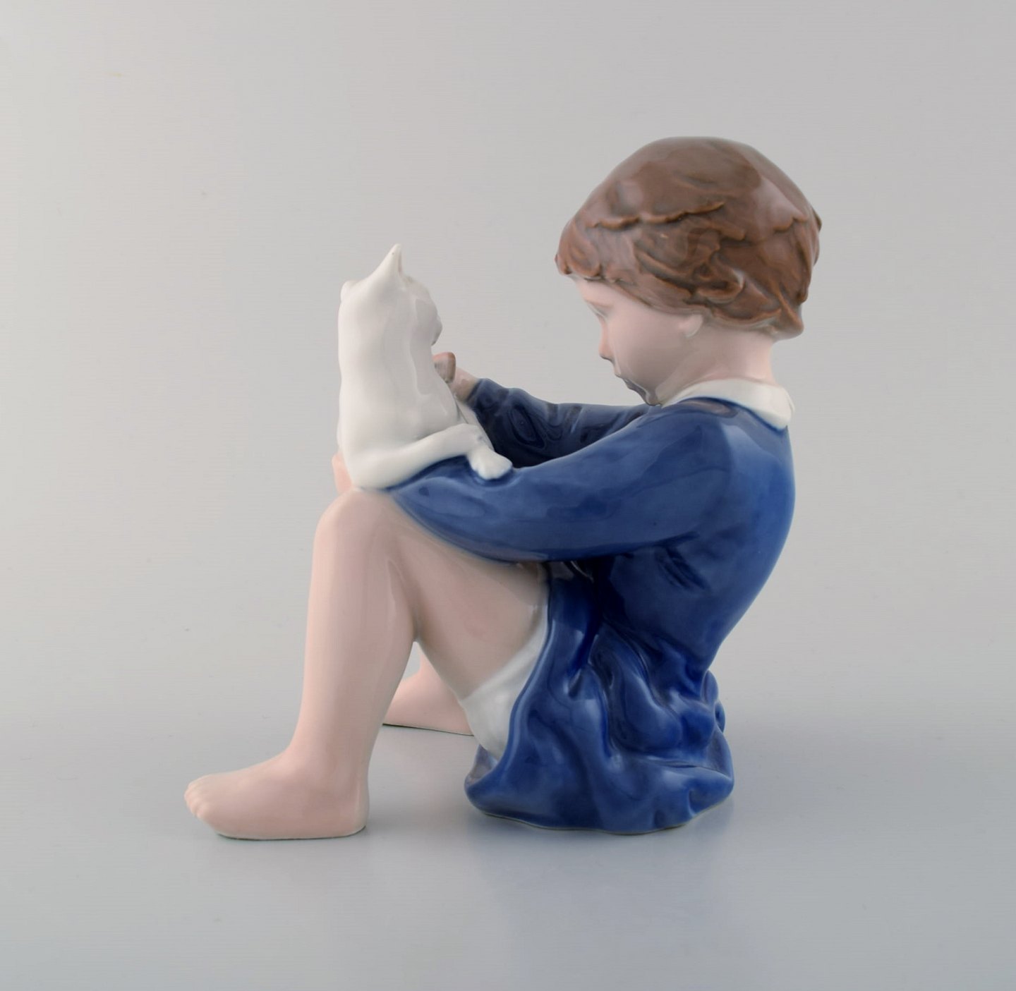Rare Royal Copenhagen Figure, girl with cat. Decoration Number 4631. In perfect condition. 2nd factory quality. Measures: 14.5 cm x 11.5 cm.