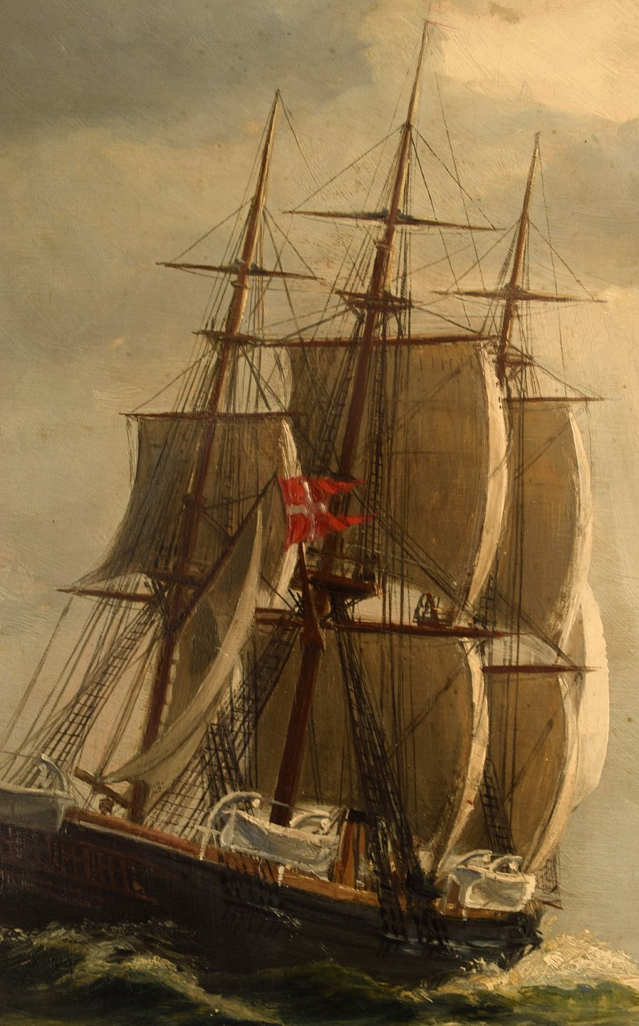 Christian Benjamin Olsen: Tremaster for sejl i høj sø. Dannebrog.