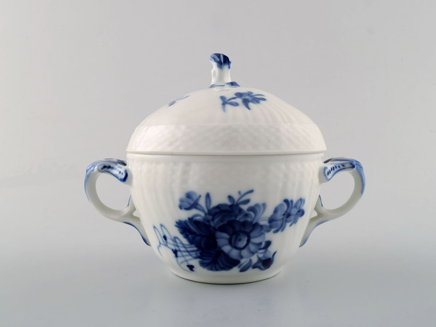 Blå blomst svejfet sukkerskål med låg fra Royal Copenhagen. Stemplet. Nummer 10/1680. 1. sortering. I perfekt stand. Måler 14,5 x 11 cm.