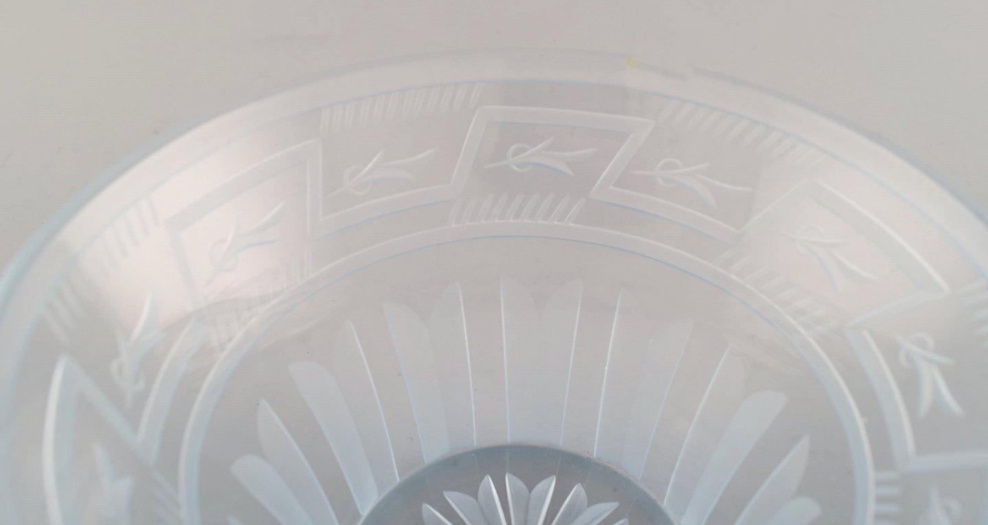 SIMON GATE for Orrefors, Art deco skål i satinslebet lyseblåt kunstglas. 1929. Måler: 15 x 8,8 cm. I perfekt stand. Signeret og dateret.