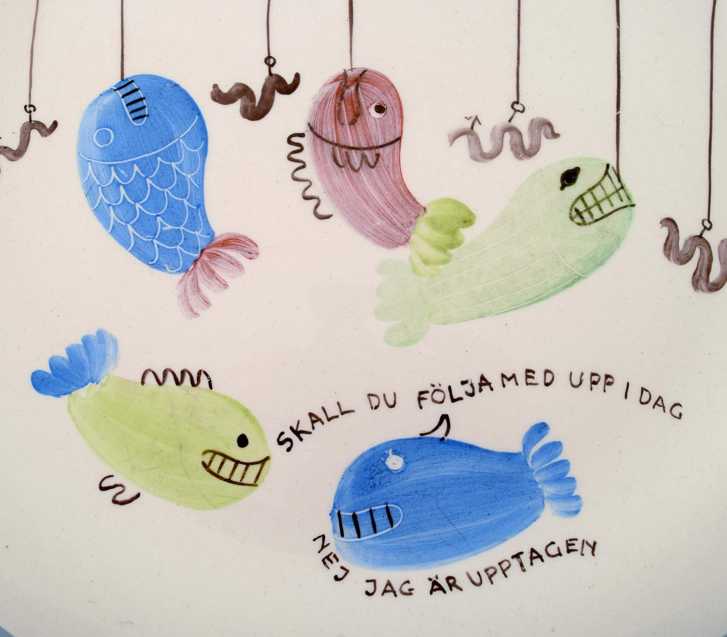 Stig Lindberg for Gustavsberg. "Löja" tallerken. Håndmalet med fiskemotiver. 1950'erne.