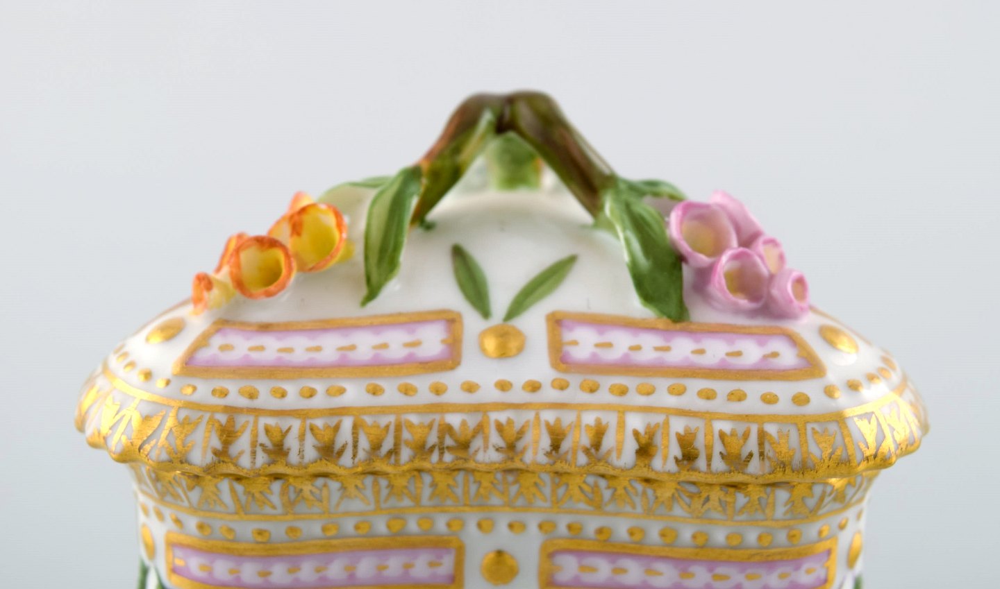 Royal Copenhagen Flora Danica triangular cream cup. Dessin # 20/3575 with branch shaped handle and flowers.