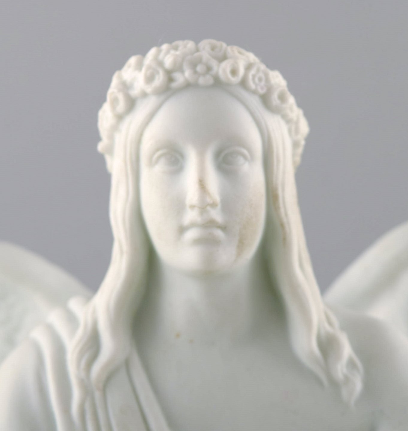 Antik B&G Bing & Grøndahl figur i biscuit. Dåbens engel efter Thorvaldsen. 1860-1880. Fremstår i flot stand. Stemplet. Måler: 21 x 12 cm. 23 cm Høj.