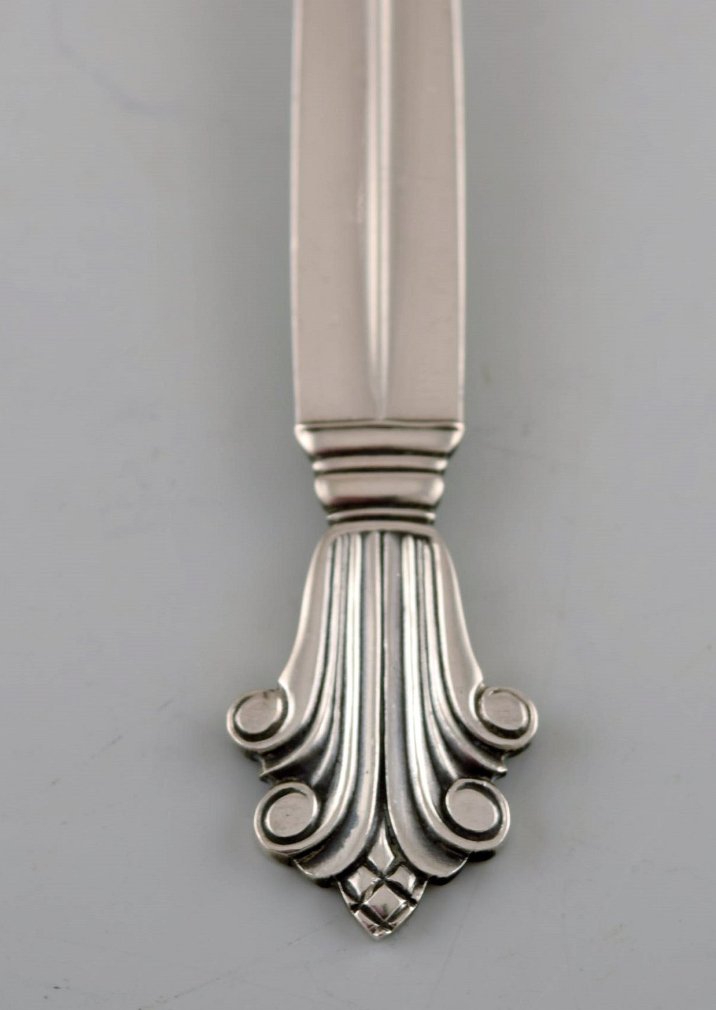 Georg Jensen Dronning frokostgaffel i sterlingsølv. Tre stk på lager. Designer: Johan Rohde. Længde: 17 cm. Stemplet. I flot stand.