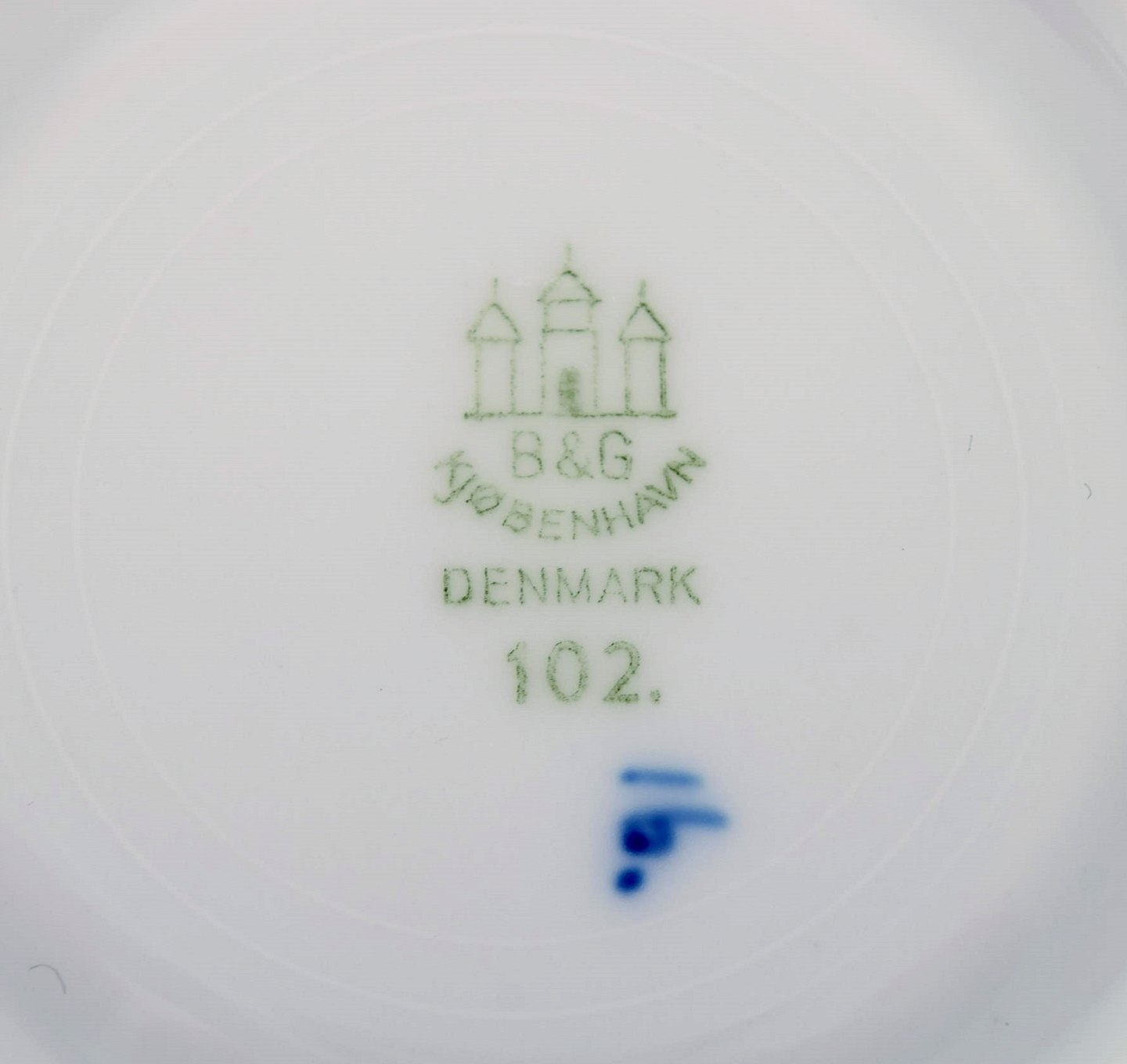 Bing & Grondahl / B&G, "Butterfly". Four coffee cups with saucers and four plates in hand painted porcelain.