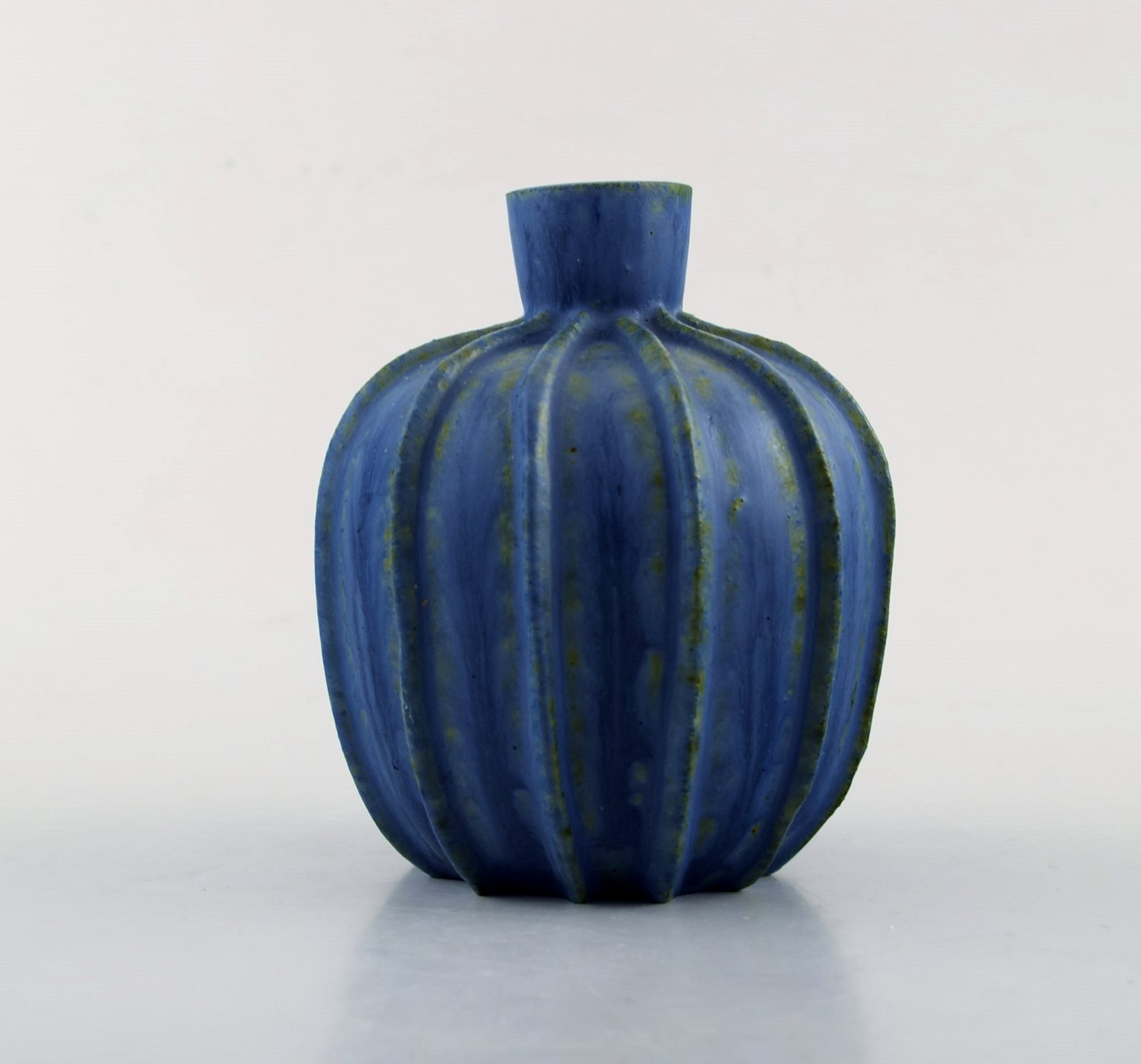 Arne Bang. Vase in glazed ceramics. Model number 2. Beautiful glaze in blue shades. 1930's. In very good condition. Signed. Measures: 11 x 9.5 cm.