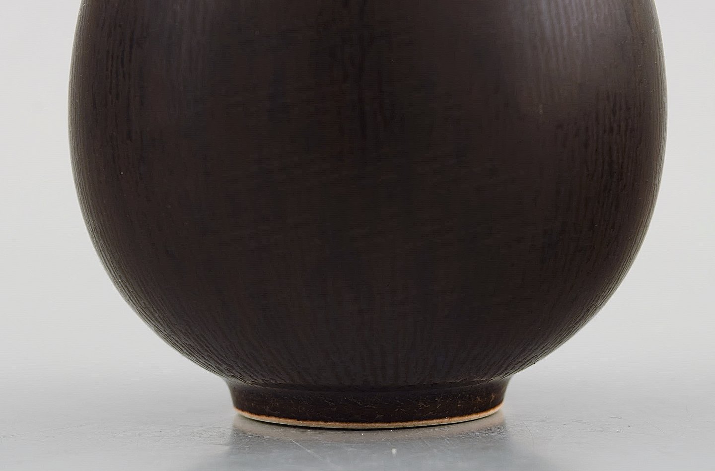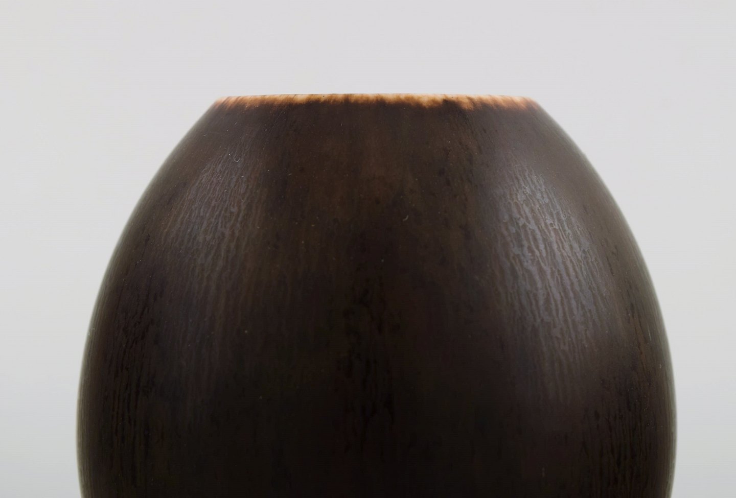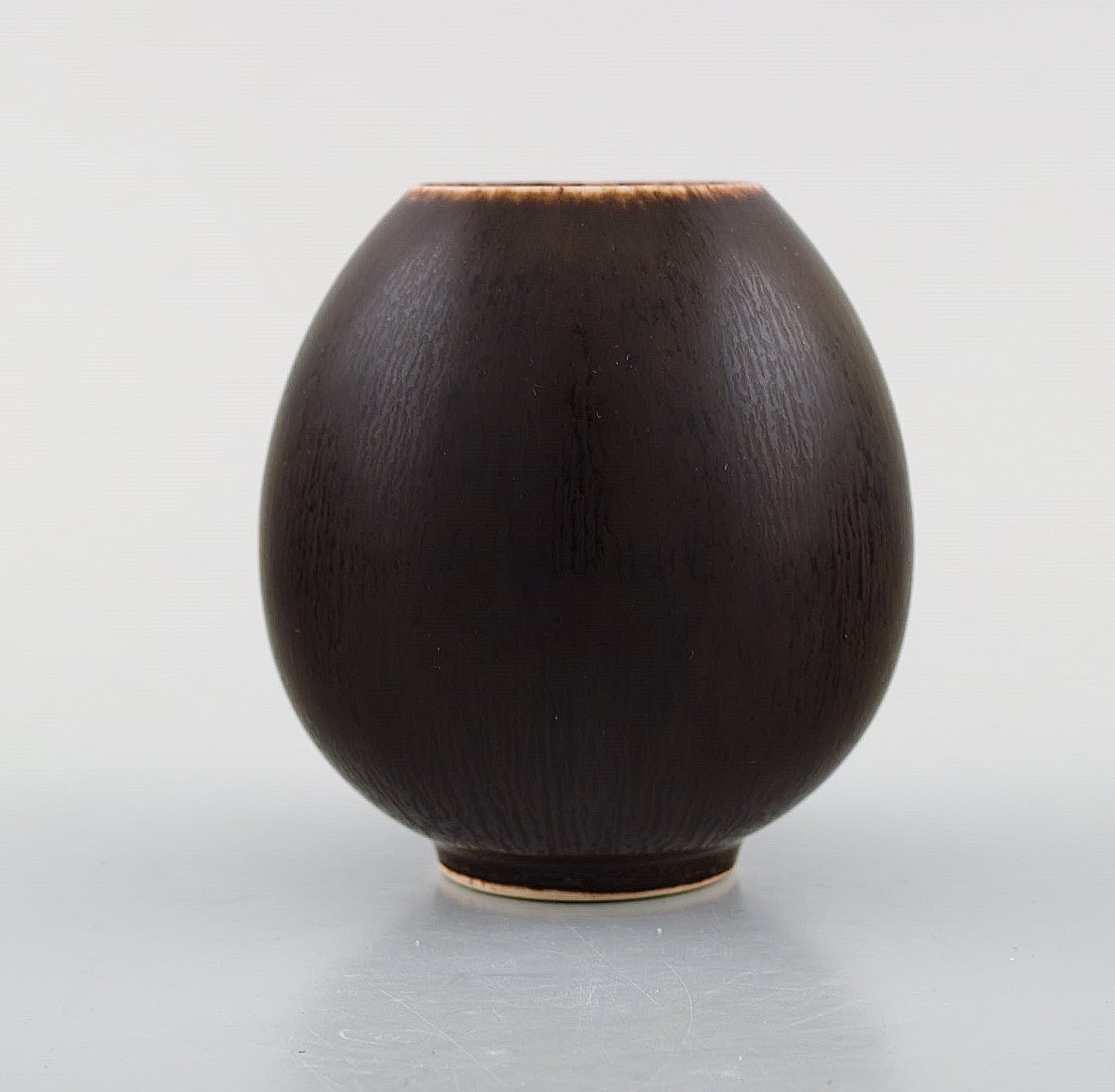 Eva Stæhr-Nielsen for Saxbo. Vase of stoneware in modern design. Beautiful glaze in brown shades. 1940 / 50's. Stamp: Yin Yang. Measures: 9.5 x 8.5 cm. In very good condition.