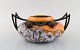 Louis Dage (1885 - 1961), fransk keramiker. Art nouveau krukke i glaseret keramik med smedejerns- og bronze montering. Dekoreret med agern og blade. Ca. 1910. Måler: 25 x 10,5 cm. I flot stand. Signeret.