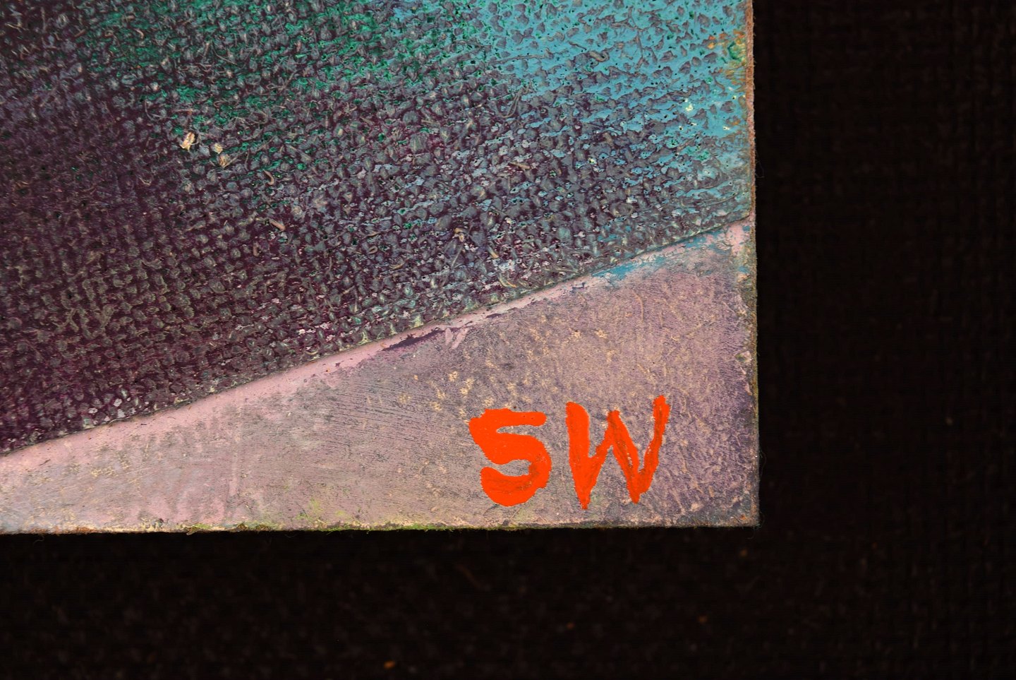 Stellan Widholm, Swedish painter. Oil on board. Abstract / concrete composition. 1960's. The board measures: 20 x 20 cm. The frame measures: 5 cm. In very good condition. Signed in monogram.