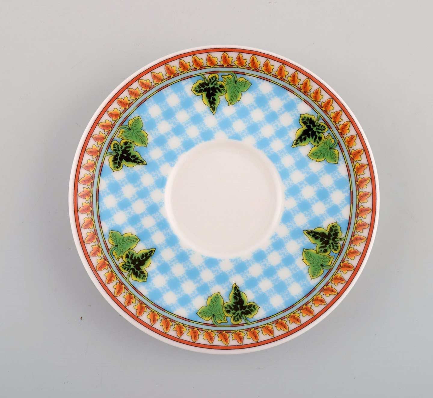 Gianni Versace for Rosenthal. To "Ivy Leaves" kopper med underkopper og to skåle. Sent 1900-tallet. I perfekt stand. Koppen måler: 7,5 x 4,5 cm. Underkoppen måler: 12 cm. Skålen måler: 17,5 x 5 cm. Stemplet.
