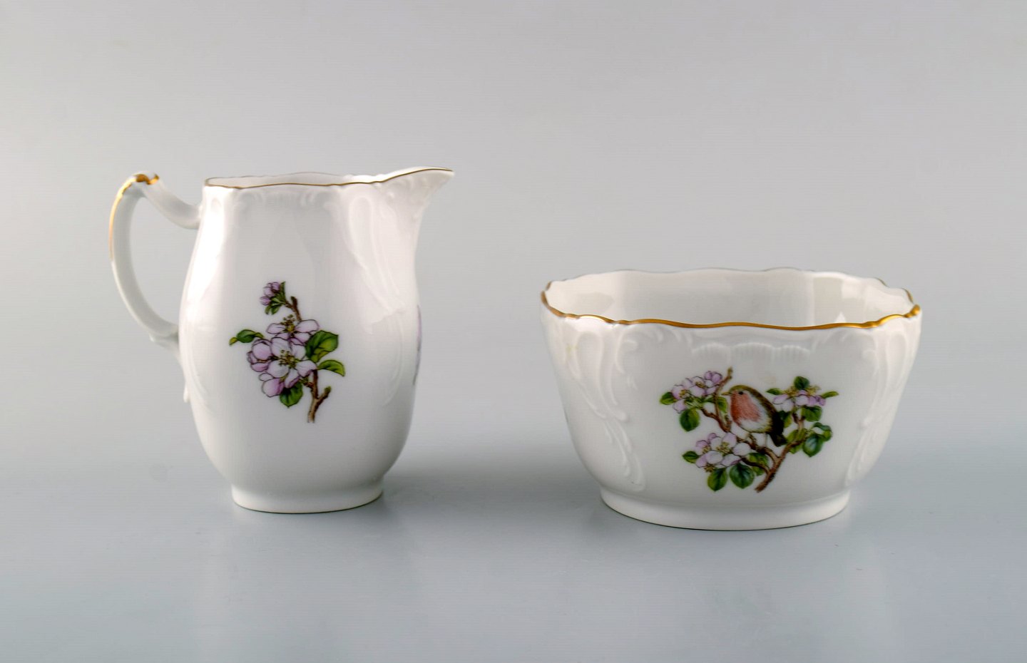 Sjældent Royal Copenhagen "Forår" kaffeservice til seks personer i porcelæn med motiver af fugle og bladværk. Stelnummer: 1533. 1980'erne.