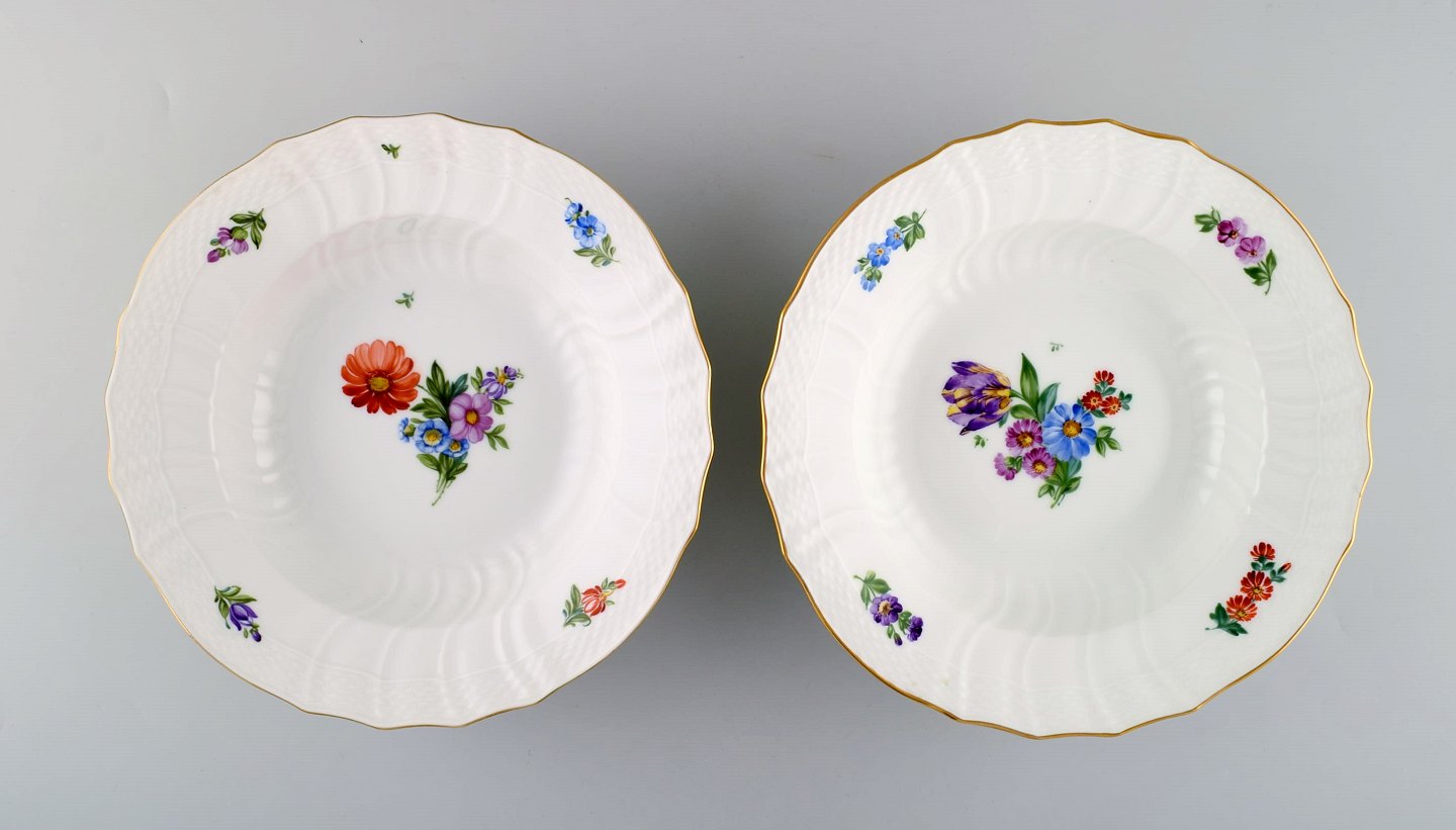 Royal Copenhagen Let Saksisk Blomst. Seks dybe tallerkener i håndmalet porcelæn. Modelnummer 1614. Tidligt 1900-tallet. Måler: 24,5 x 5,8 cm. I flot stand. Stemplet. 1. Sortering.