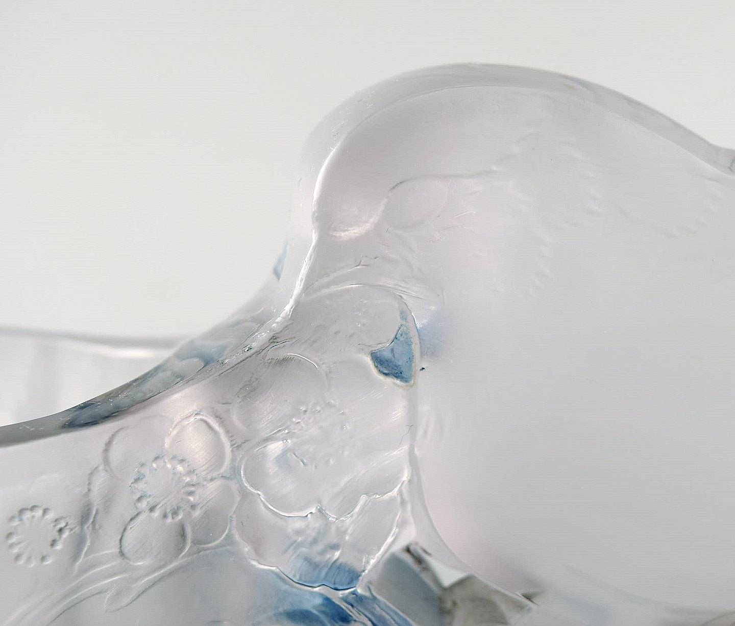 Early and rare René Lalique "Mésanges" jardiniere in art glass with birds. Model 420. Ca 1931. Measures: 53 x 13.5 cm. Stamped: R. LALIQUE, FRANCE In VERY good condition.