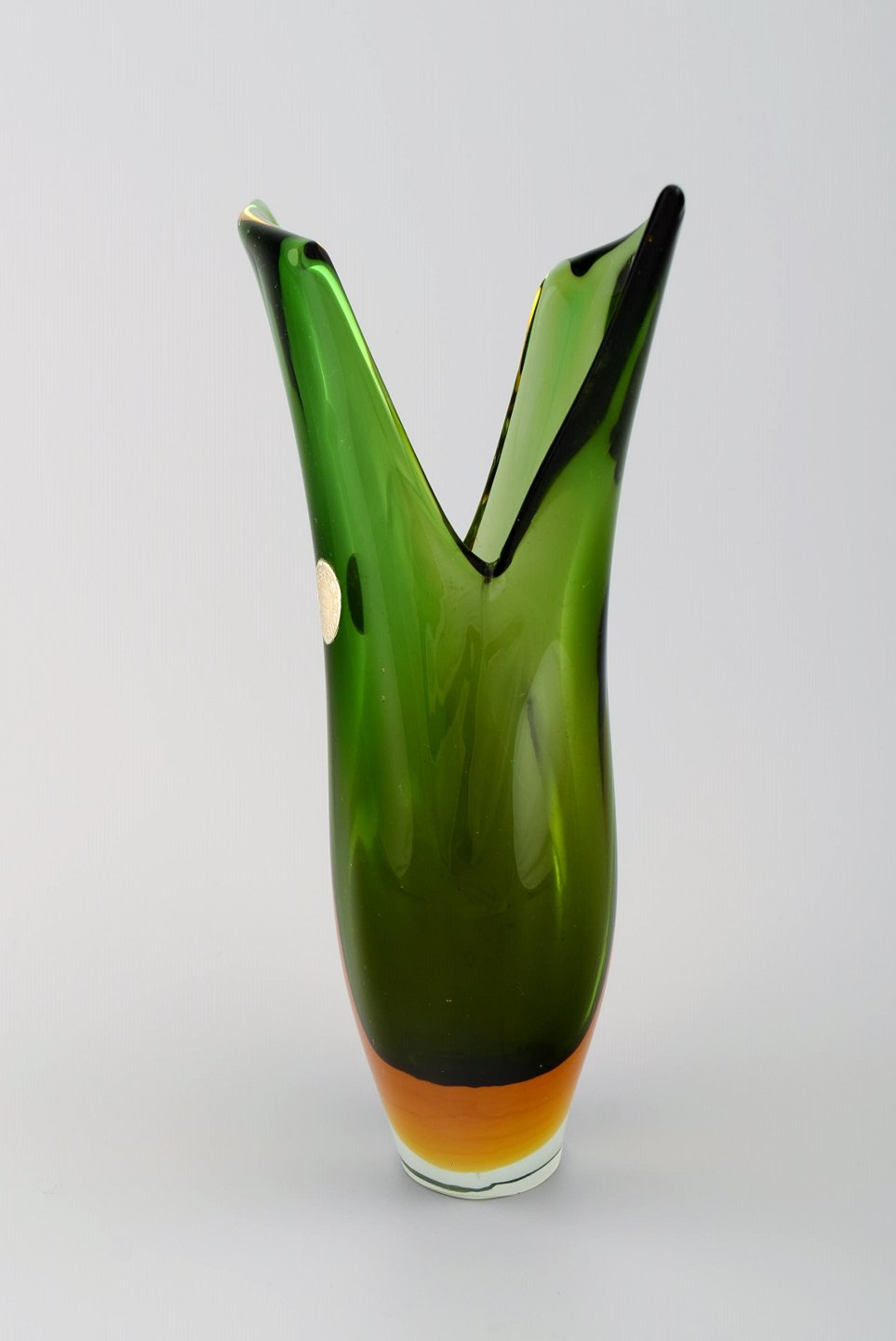 Murano vase in mouth blown art glass. Italian design, 1960s. Measures: 20.5 x 15 cm. In perfect condition. Sticker.