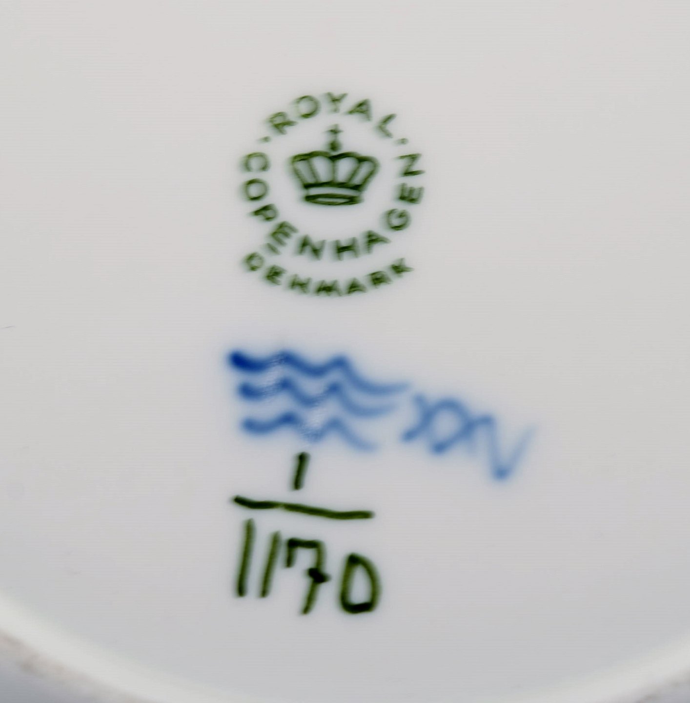 Nine Royal Copenhagen Blue Fluted full lace deep plates. Model number 1/1070. Measures: 20 x 4 cm. 2nd factory quality. In excellent condition. Stamped.