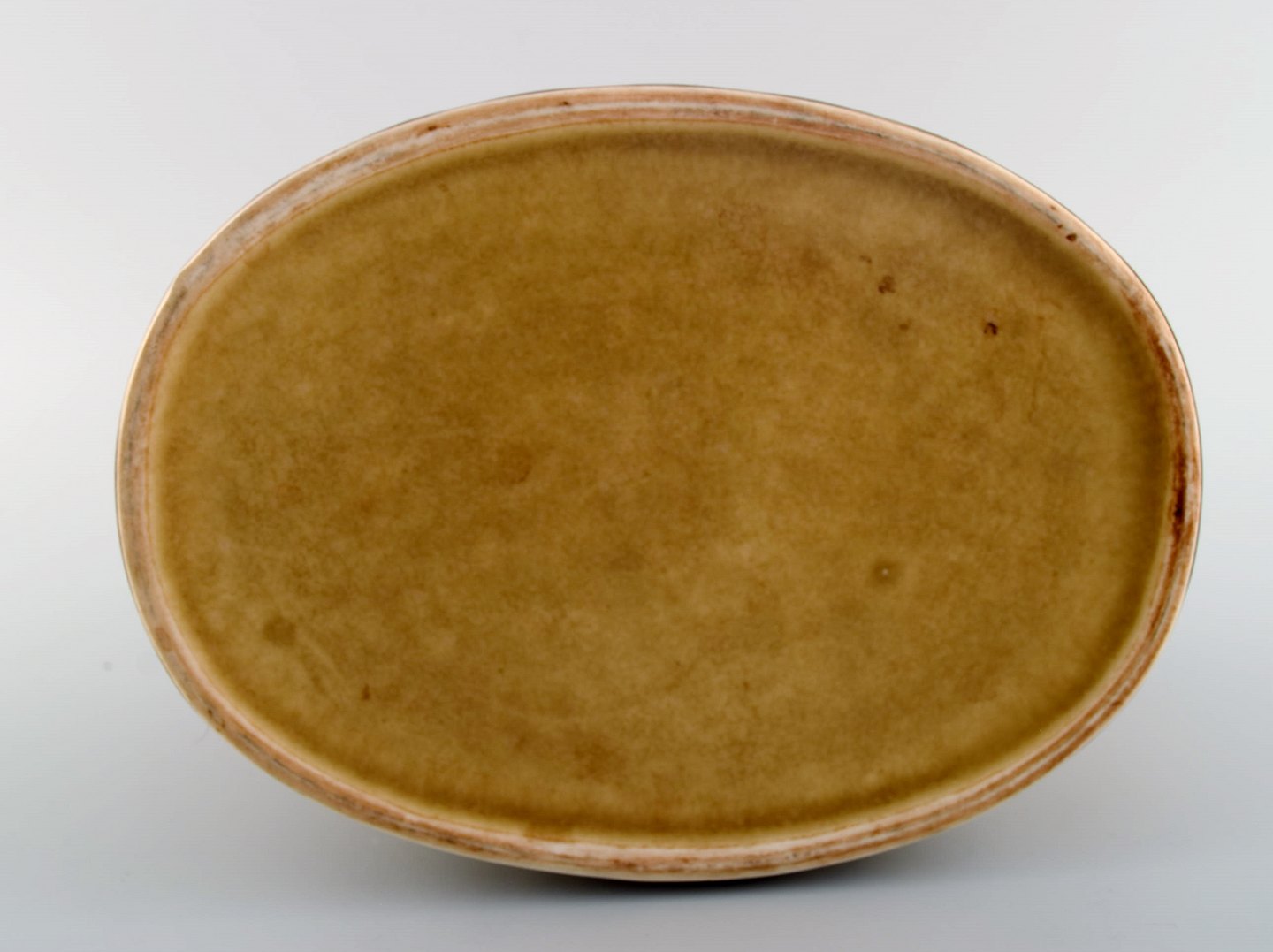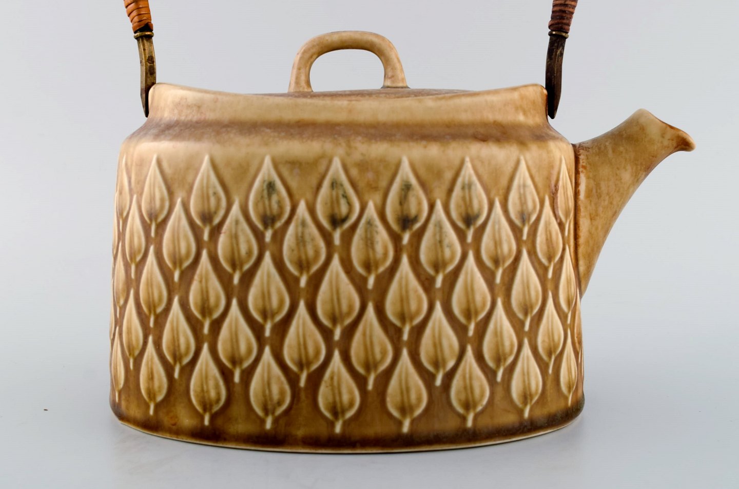 Jens H. Quistgaard (1919-2008) for Bing & Grondahl. Relief teapot in glazed stoneware with wicker handle. 1960's. Measures: 22 x 21 cm (incl. Handle). In excellent condition.