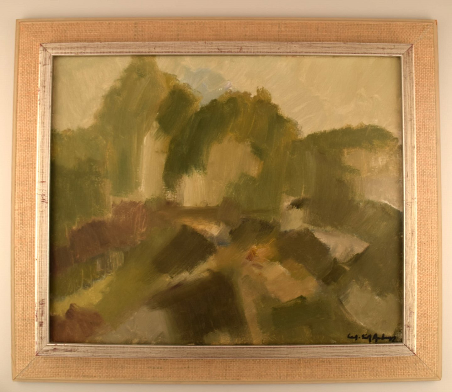 Sven Angborn (1925 -), Swedish artist. Oil on canvas. Modernist landscape. 1960's. In excellent condition. Signed. The board measures: 60 x 49 cm. The frame measures: 7,5 cm.