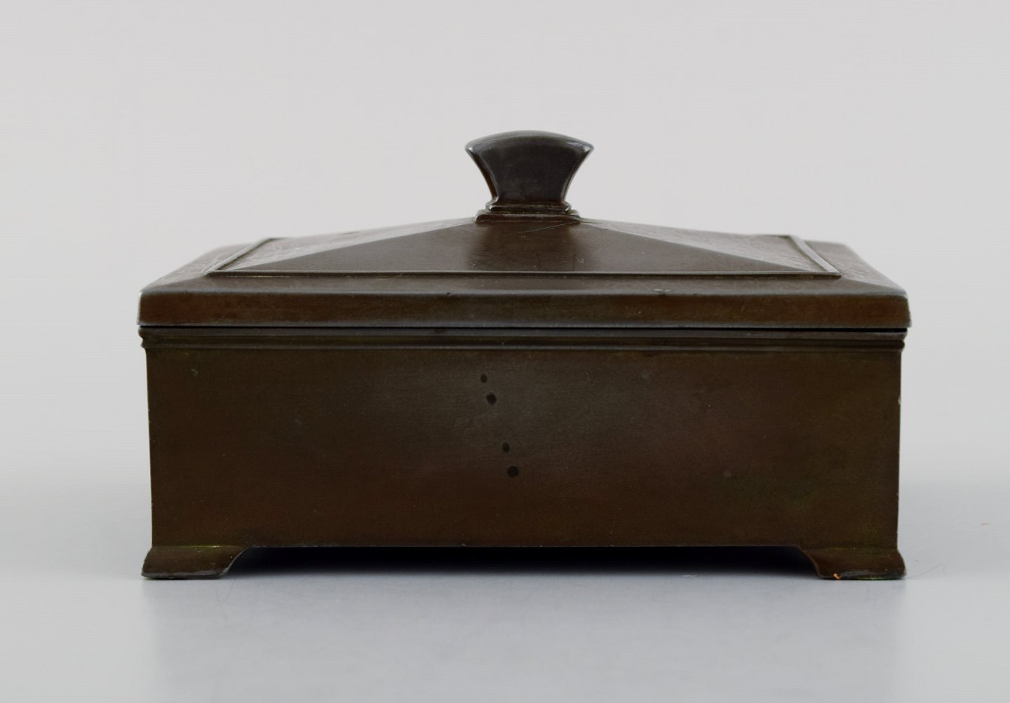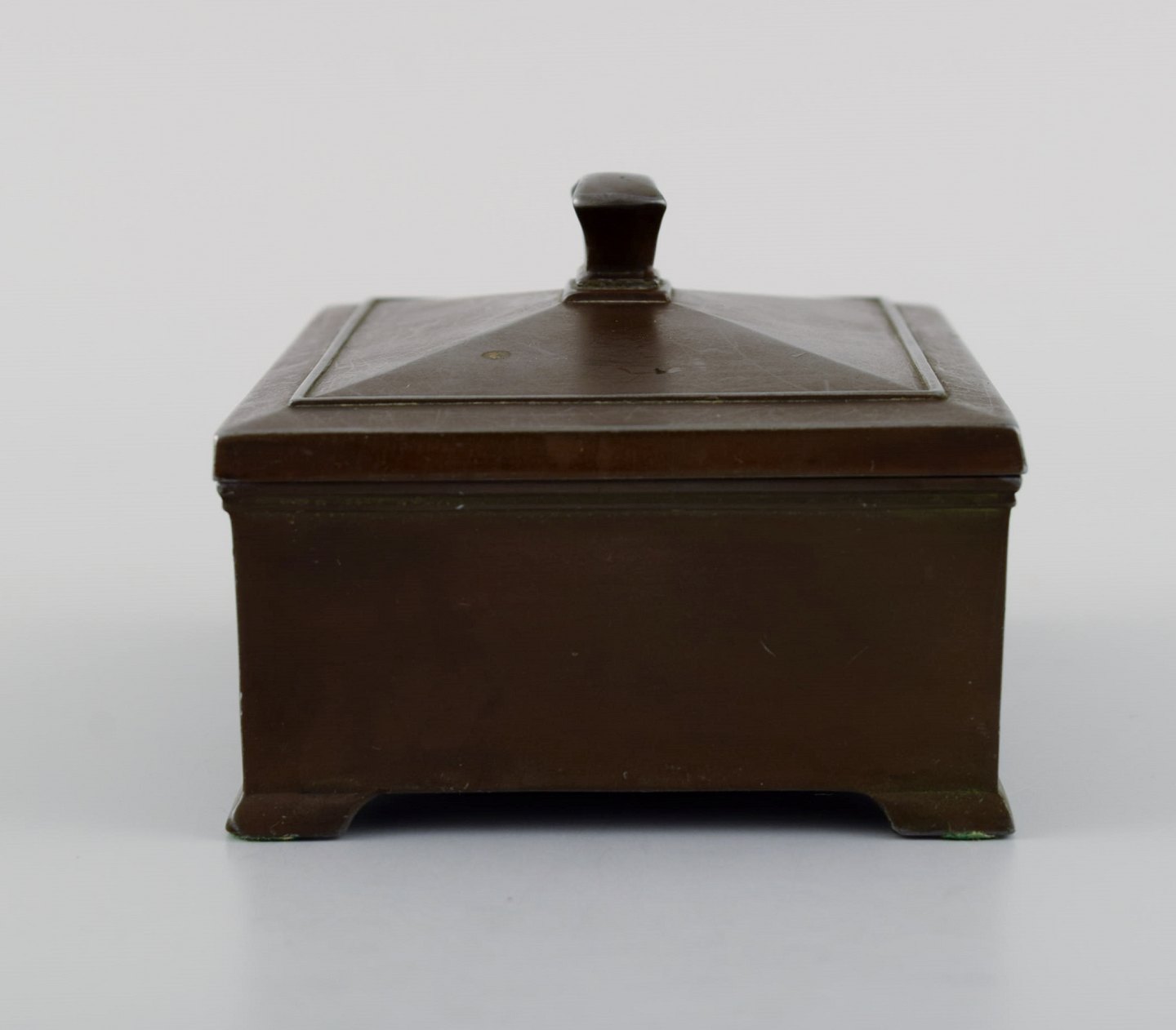 Just Andersen. Tidligt art deco smykkeskrin i diskometal. 1930'erne. Modelnummer 1441. I flot stand. Stemplet. Måler: 11,5 x 8,5 x 7,5 cm.