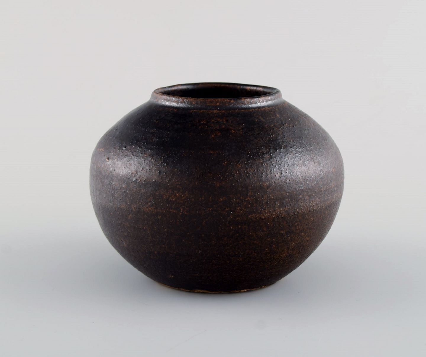 European studio ceramist. Round vase in glazed ceramics. Beautiful glaze in brown shades. 1970 / 80s. Measures: 10.5 x 80 cm. In excellent condition. Signed.