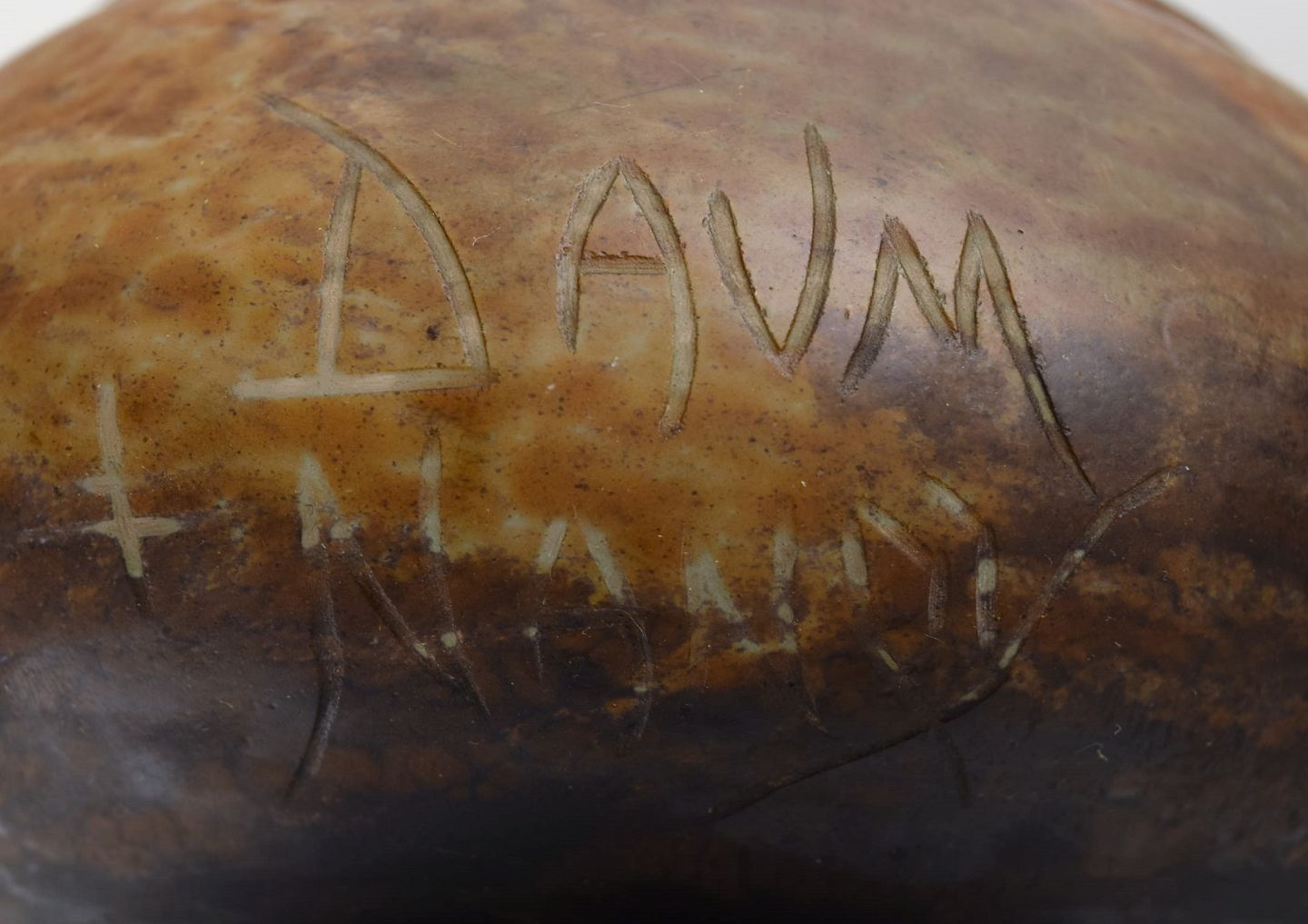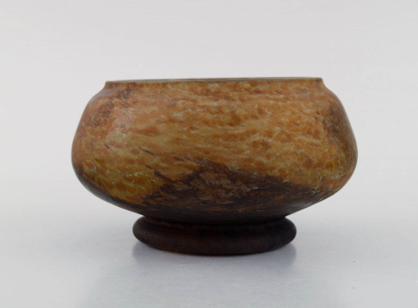 Daum Nancy, Frankrig. Art deco skål i røgfarvet mundblæst kunstglas. 1930'erne. Måler: 14,5 x 8,5 cm. I flot stand. Signeret.