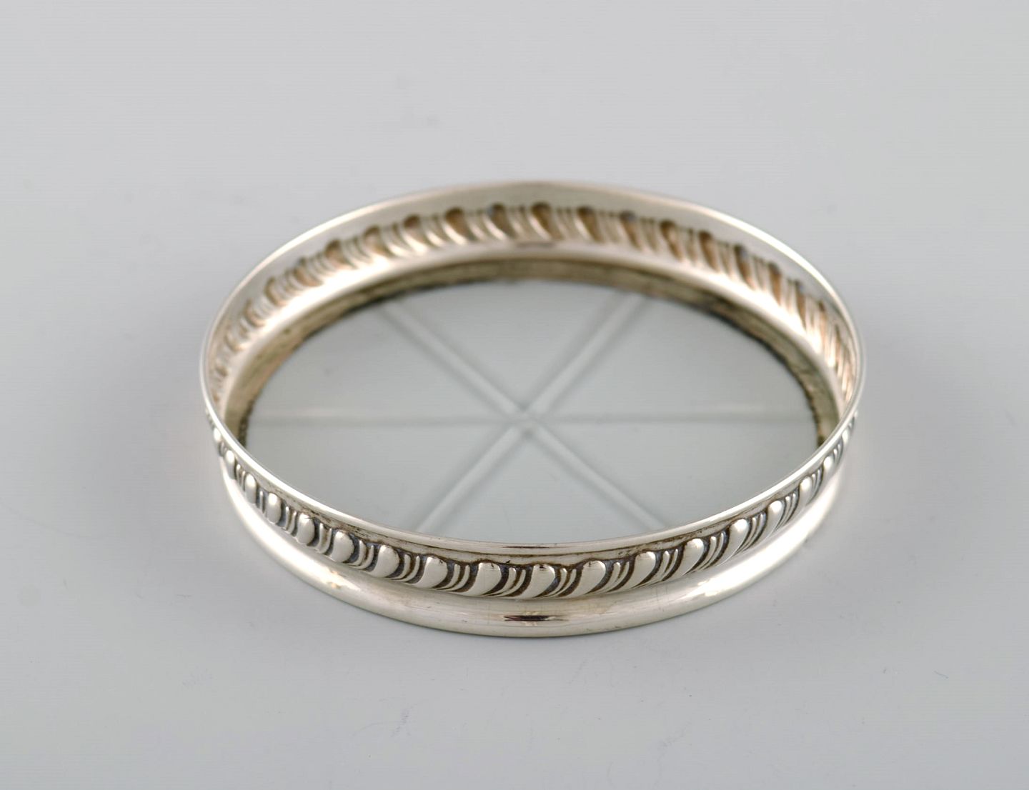Roden Brothers, Canada. Six antique bottle trays in sterling silver and art glass. Approx. 1920.